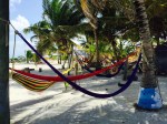 We spent the rest of our days reading by the pool–I think Deb and I each read 4 or 5 books–and forgetting what day of the week it was. Deb discovered a fruit stand that sold liters of freshly squeezed tropical fruits that were delicious. We ate on the beach at tables with swings instead of chairs. And experienced hammock heaven.