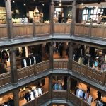 I finally pulled myself away to find which level houses the yardage. Liberty is famous for its fabrics that quilters and seamstresses covet. This was a good option for me–since I can’t afford anything else in the store and have absolutely zero room in my suitcase! I settled on a delicious fabric called “Earthly Delughts” to make a scarf. I purchased half a meter for £25.