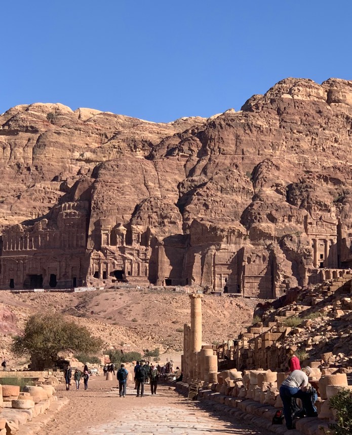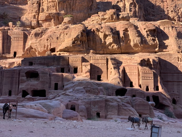 After gloating over the splendid view for a time, we resumed walking through Petra. I had no idea how many beautiful facades were carved in the rocks! And they were–to my surprise–tombs. I thought “Petra is basically a graveyard!” But my impression is too simplistic. The Nabateans would travel from nearby homes to transact business. The streets would have been filled with activity. And the King’s residence was here.