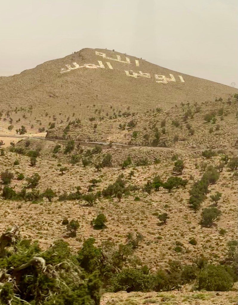 We traveled through diverse terrain. For a time we passed through green landscape with houses sporting pitched roofs. These are necessary in the Atlas Mountains because of the snowfall. I was surprised at how quickly I’d become accustomed to the flat roofs.