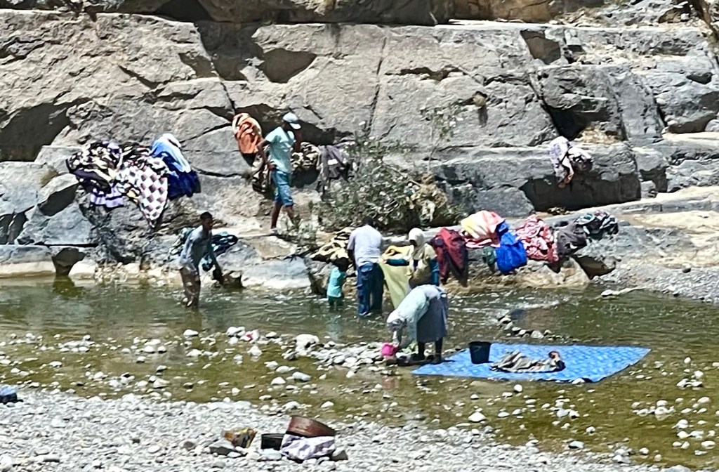 We saw families washing rugs in streams. Mohammed explained that the rugs are usually cleaned cooperatively with another family because it’s such a big task.