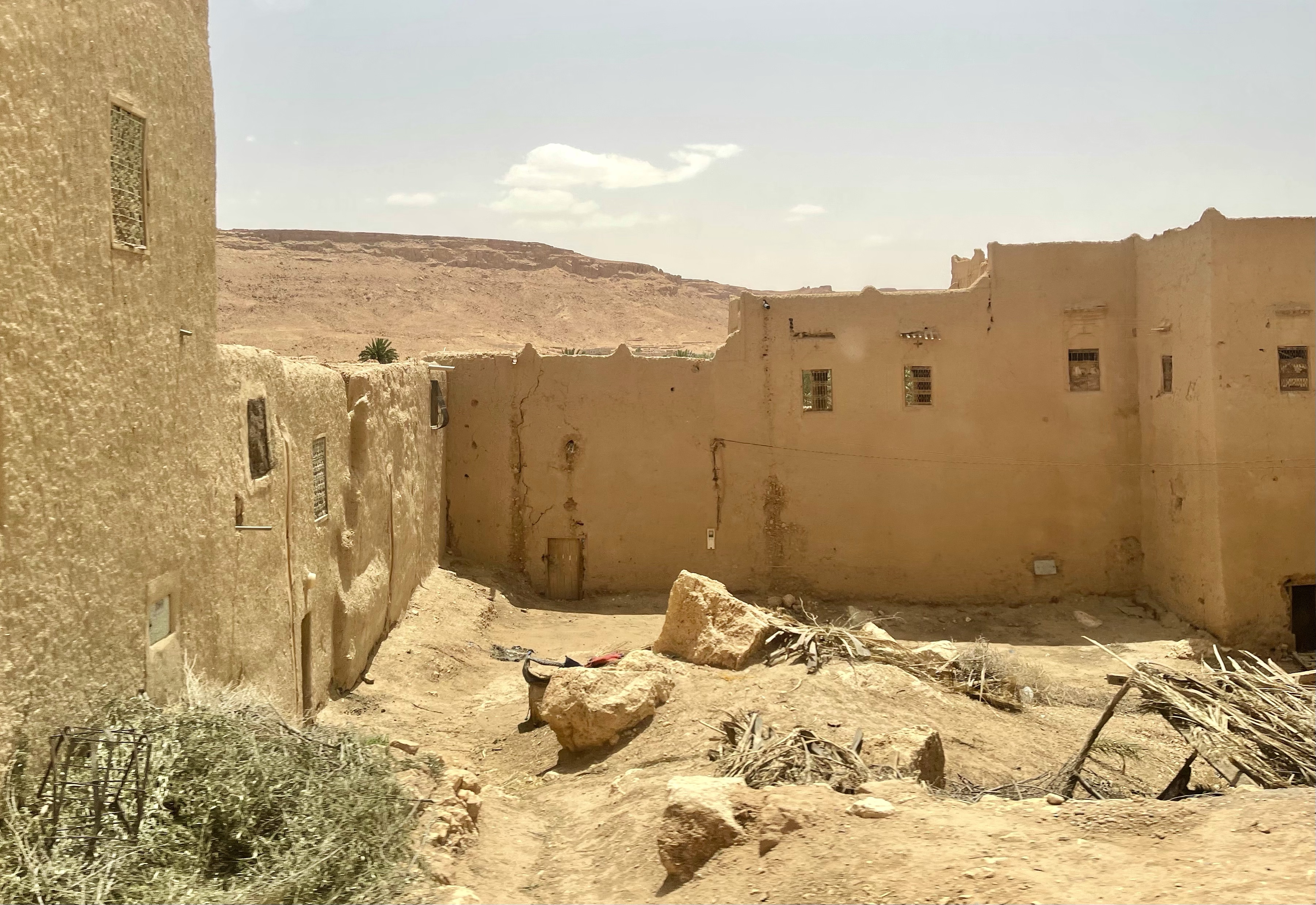 The landscape gradually changed until we were viewing green swathes of date trees growing beneath dramatic red rock. And the homes were made of Adobe.