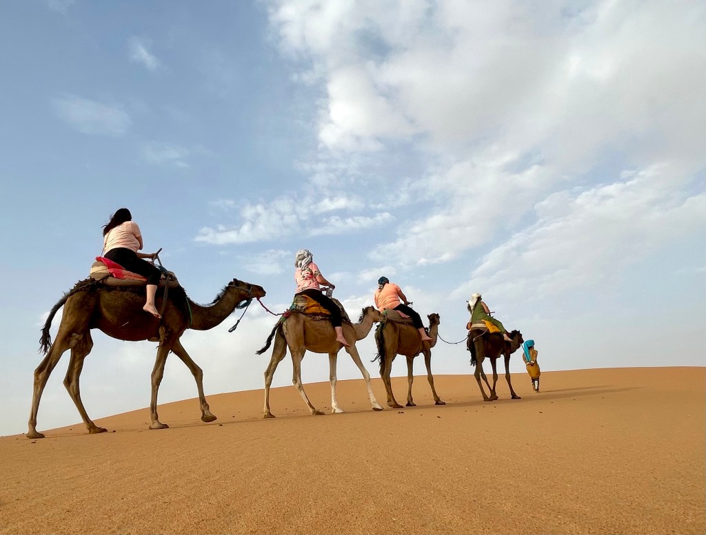 Our ride was restorative! Surrounded by golden sand and vast expanses of undulating hills, we adapted the slow rhythm of these friendly beasts. Atop a high, lonely dune, we watched the sun set.