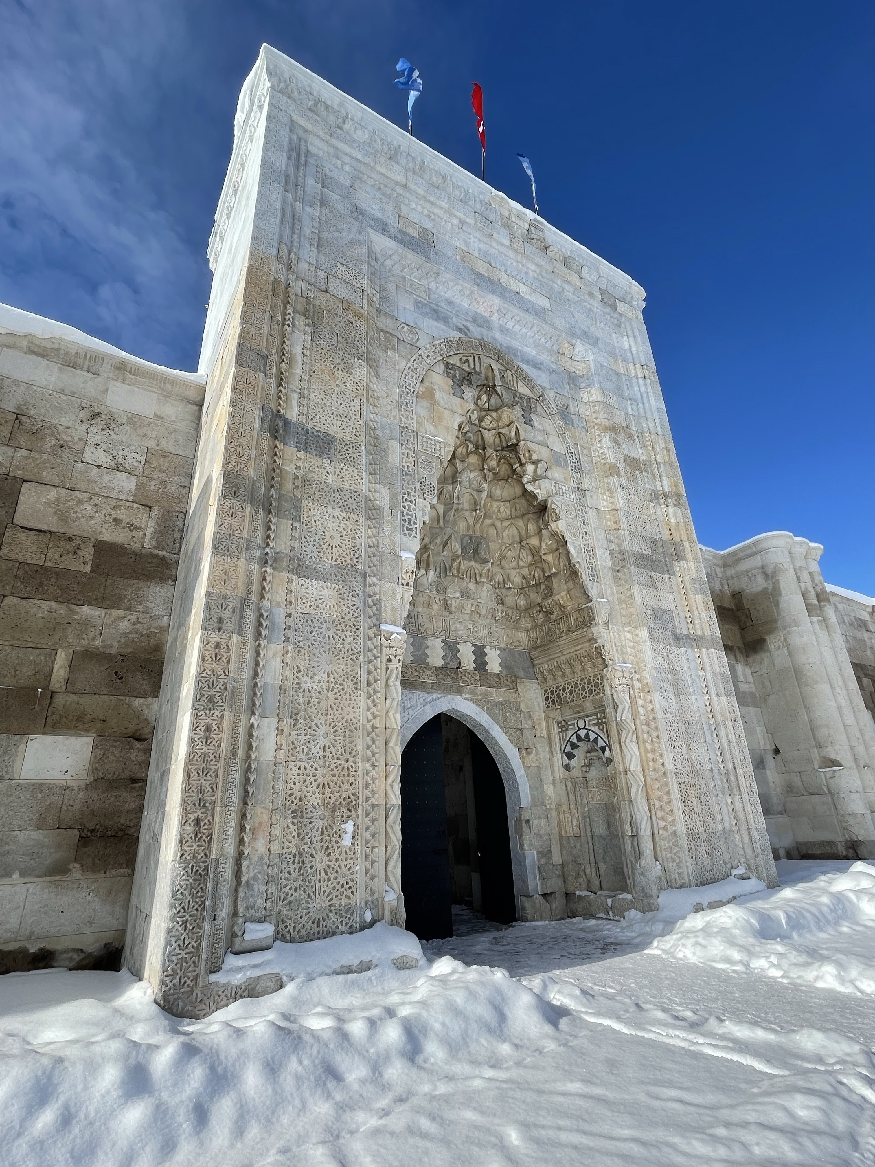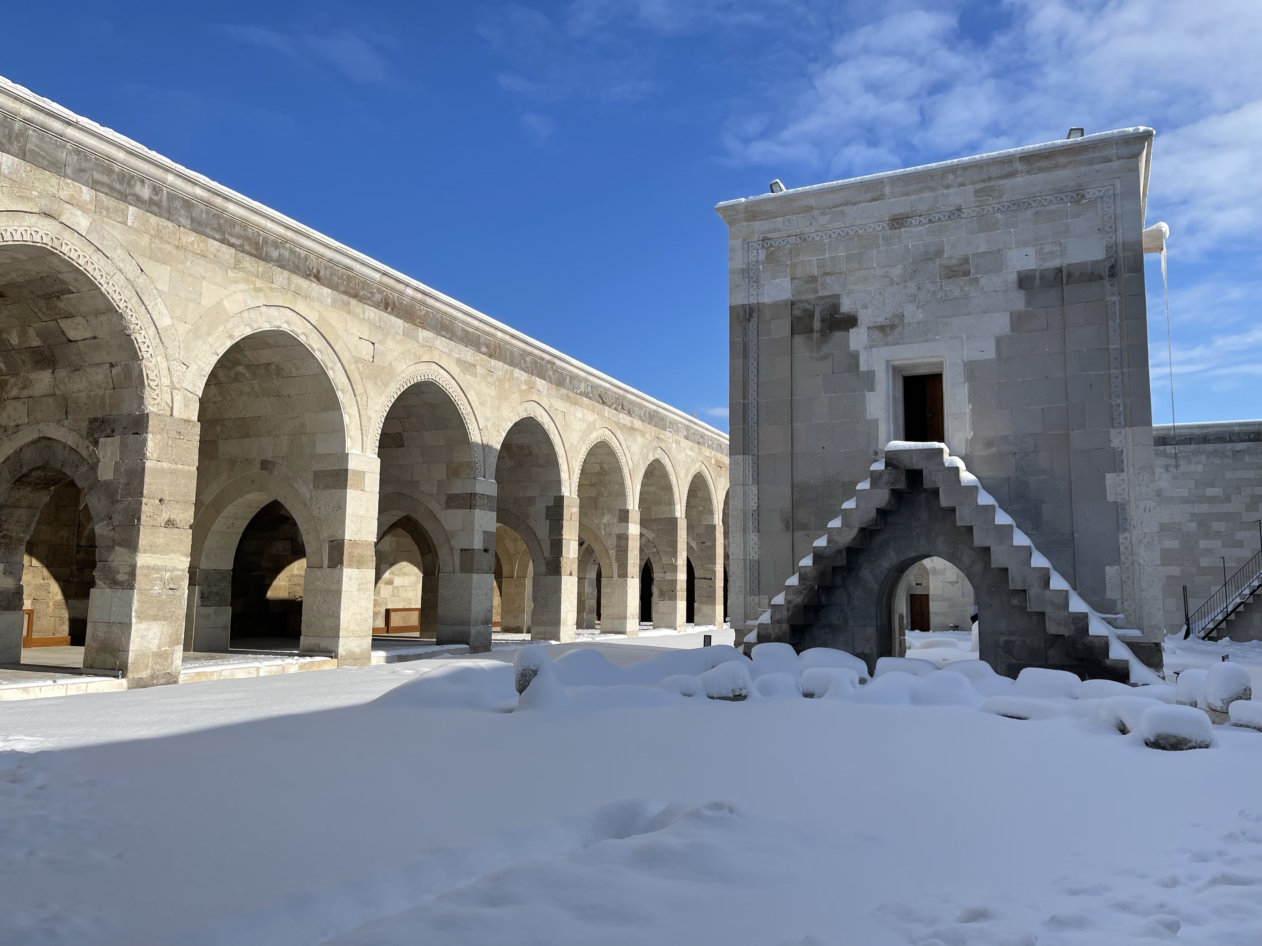 Anciently, caravanserais were used along the Silk Road as roadside inns. The space between them was typically the distance a camel could travel in a day. They protected travelers from the elements and danger. If the weather conditions were harsh, travelers would sleep with their animals for warmth. This caravanserai, Sultan Han, was recently restored and is the largest in Turkey.